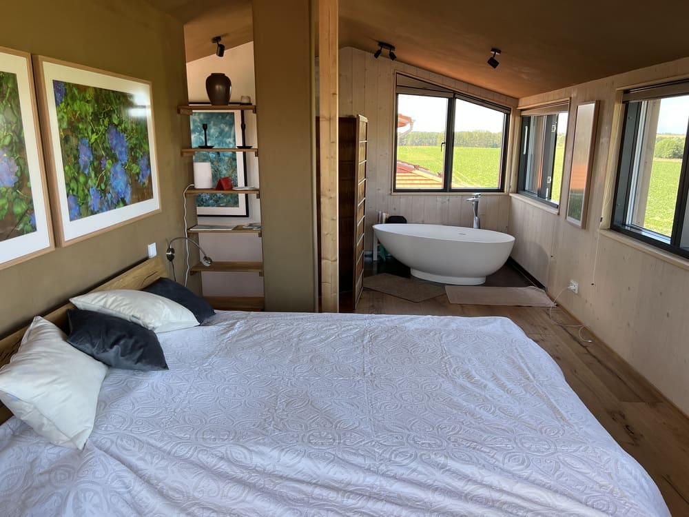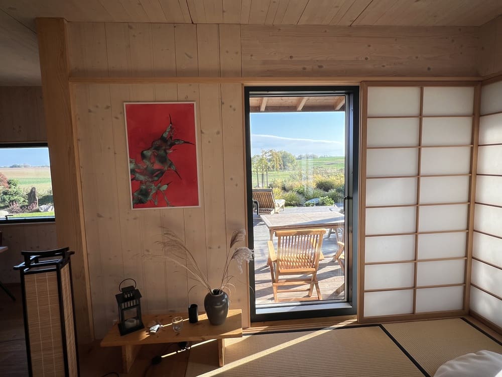 Der Lehmputz sorgt dafür, dass sich die Luftfeuchtigkeit reguliert. Mehr Natur geht in einem Haus nicht! Wenn Sie ökologischen und nachhaltigen Urlaub suchen, dann sind Sie mit unseren Bio-Holzhäusern am Ziel!